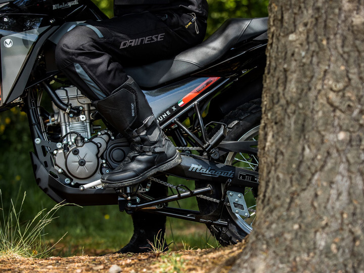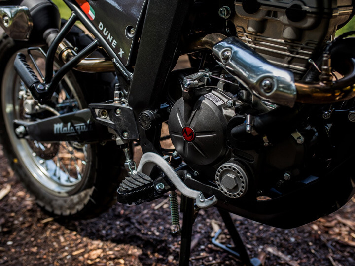 La Malaguti DUNE125X a été conçue pour les chemins de terre. Elle franchit facilement chaque obstacle.