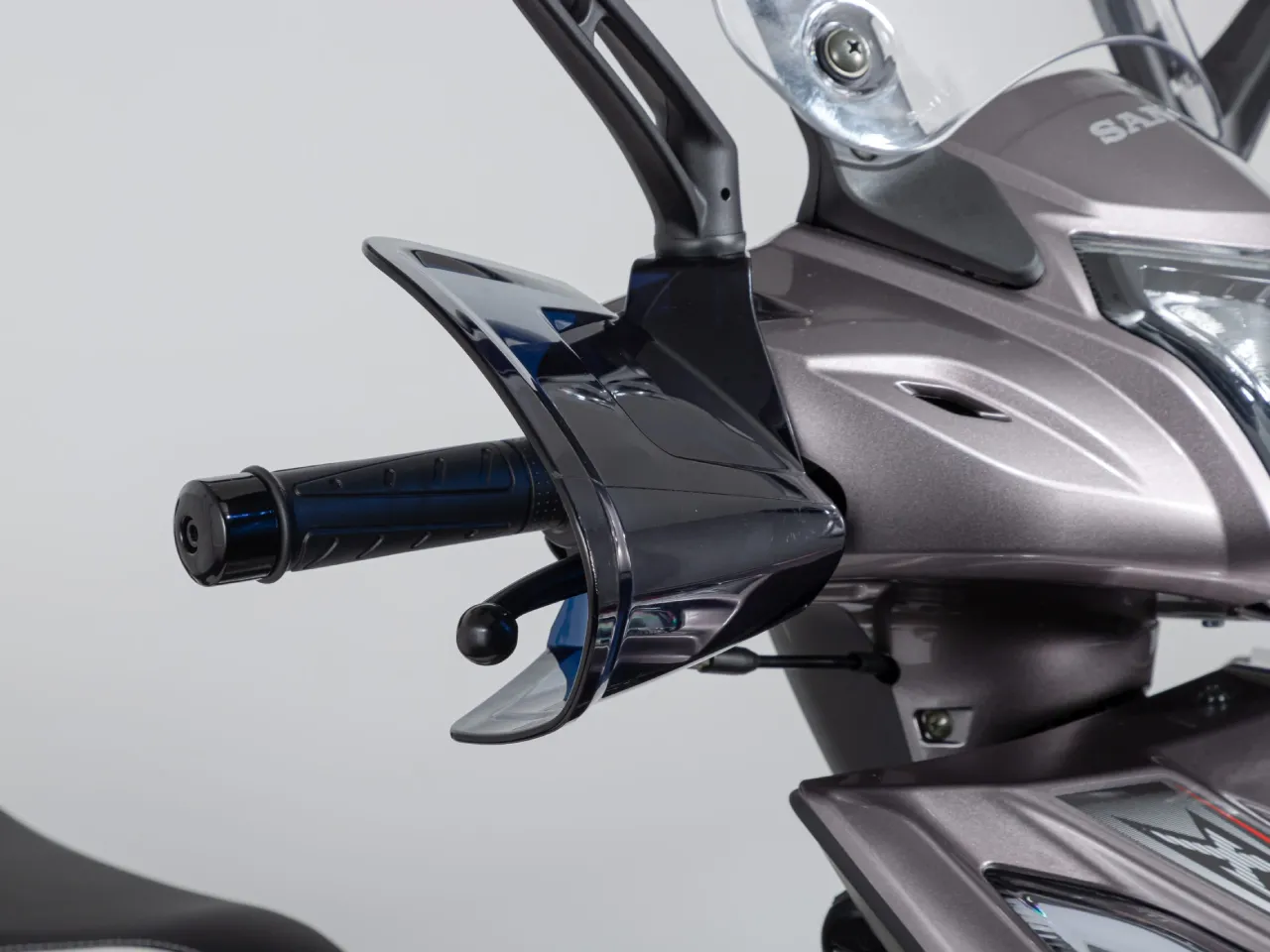 • Confort et Praticité : Protège-mains et visière pour un confort supplémentaire. Le frein à main est un ajout pratique pour les arrêts rapides.