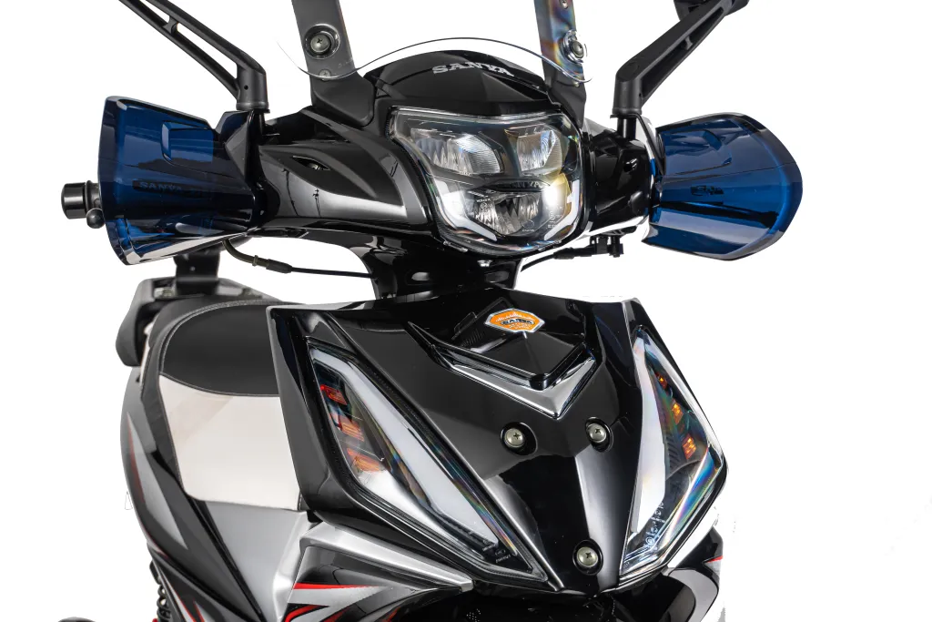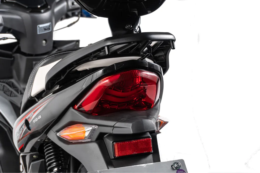 • Sécurité : Freins à disque à l’avant et à l’arrière pour une meilleure performance de freinage. Les clignotants et les rétroviseurs ajoutent à la sécurité.